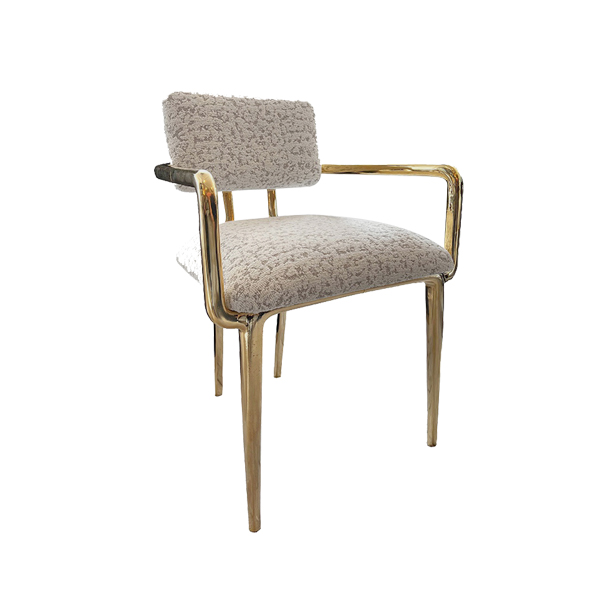 Akarsana Modern Chair is crafted with high-quality stainless steel construction, offering both durability and sophistication. Its sleek and precise design makes it an ideal addition to dining room or living spaces. With plush cushions on the backrest and seat, combined with stainless steel accented with a luxurious gold finish, this chair provides unmatched comfort along with a premium aesthetic.