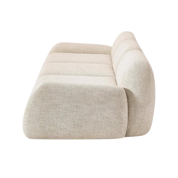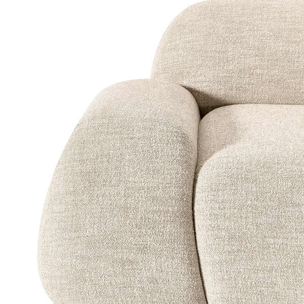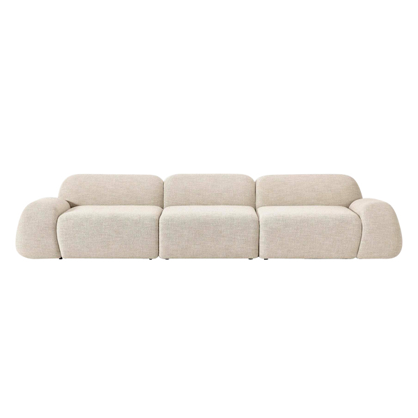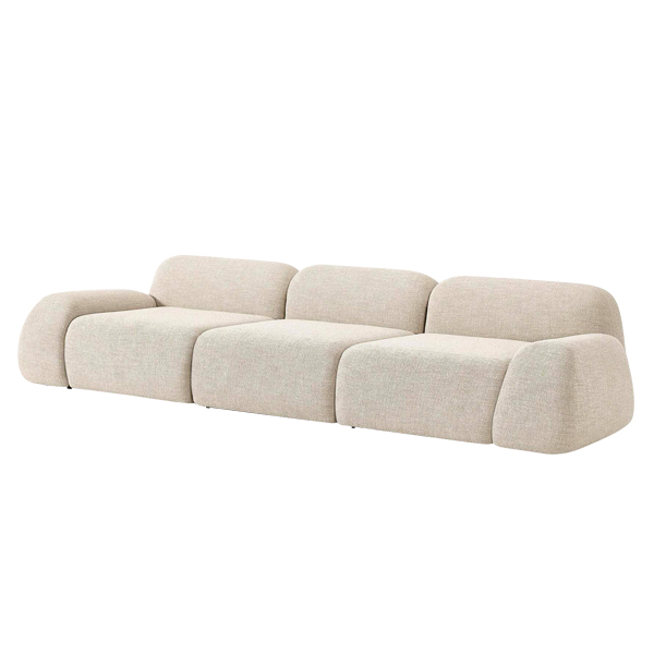 Comprising three main modules, this sofa allows you to customize its arrangement according to your space and preferences. The modular concept offers unparalleled flexibility, making it an ideal solution for rooms of any size, whether spacious or compact. Wrapped in premium quality soft fabric, this sofa provides a luxurious texture that is both smooth and durable. The material is resistant to light stains and easy to maintain, ensuring the sofa retains its fresh and polished look for years to come. Equipped with plush foam cushions, this sofa offers optimal support for your body. Its curved design adapts to your body’s contours, maximizing comfort while you relax.