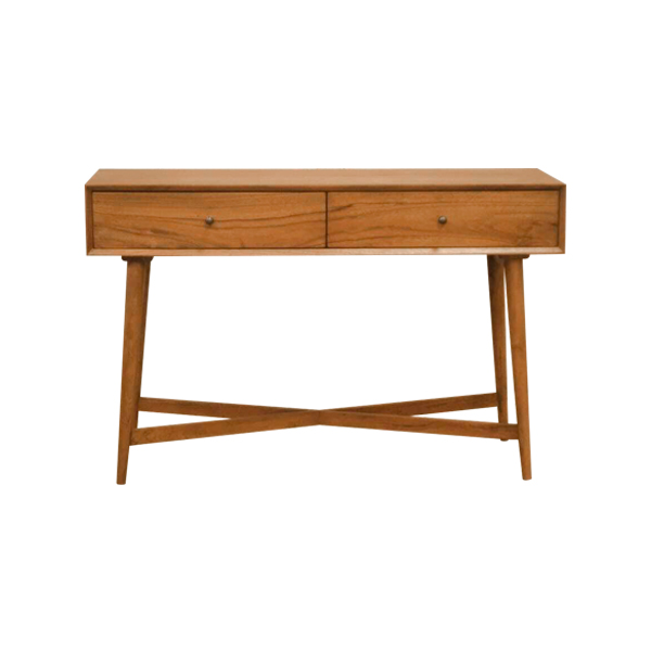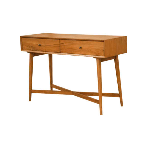 Bottom of the table has a footrest, adding extra comfort when working or studying. Footrest carefully designed to maintain the overall aesthetic while providing optimal functionality. Table’s legs, though small and slim, are crafted from strong material, offering perfect stability without adding bulk to overall design. Natural finish to the Anindya table preserves the authenticity and beauty of the teak wood, enhancing the aesthetic value of any room it occupies. Combination of classic beauty and modern functionality makes a valuable addition to any space.