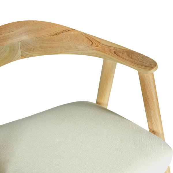 The design of this chair is inspired by minimalism, featuring clean lines and a simple look that highlights the natural beauty of the wood material. The curved backrest and cushioned seat, wrapped in soft fabric, provide excellent support for your back and promote good posture while sitting. Additionally, the sturdy legs of the chair ensure stability, making it not only visually appealing but also strong and durable. This chair complements various dining tables, fitting seamlessly into modern, contemporary, or traditional interior concepts. With its natural wood color and smooth finish, this chair becomes a focal point in any space. It is also an ideal choice for restaurants or cafes seeking an elegant and upscale appearance.