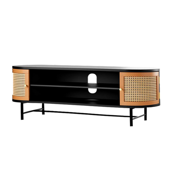 The use of rattan on the doors enhances the cabinet’s aesthetic value, offering a calming and natural vibe. The combination of natural rattan and teak wood creates a warm atmosphere, making Balamani suitable for complementing a wide range of room décor themes. Additionally, the cabinet’s legs, made of metal steel, ensure sturdiness and long-lasting durability, making it a reliable piece of furniture for long-term use. Although Balamani embraces a minimalist concept, this does not compromise its comfort and functionality. Ensuring a perfect balance between function and style. Black matte stain finish adds a modern and elegant touch, making it for room with modern or contemporary décor themes.