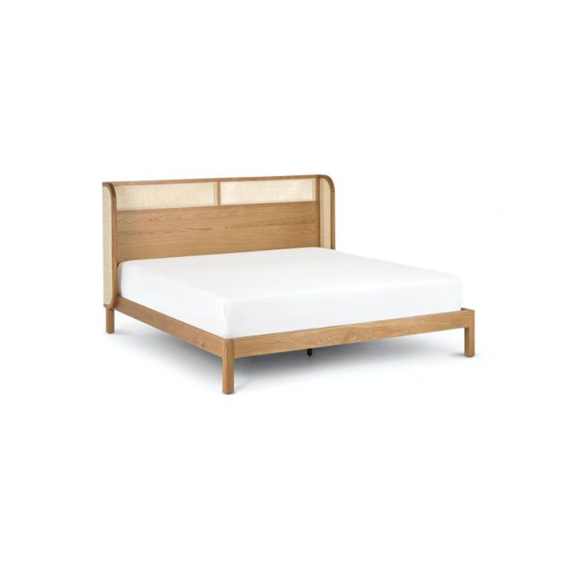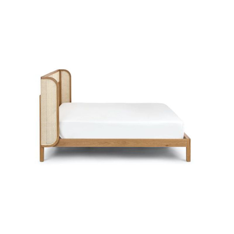 Distinguished by its headboard intricately woven with rattan, this Bed Frame achieves a perfect synthesis of classic allure within a modern framework. The interplay between teak wood and rattan imparts a unique warmth and enduring charm. It is transforming your bedroom into a haven of style and comfort.