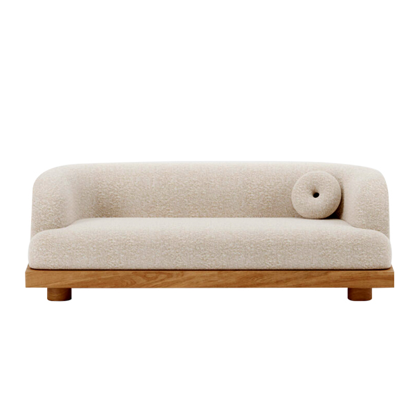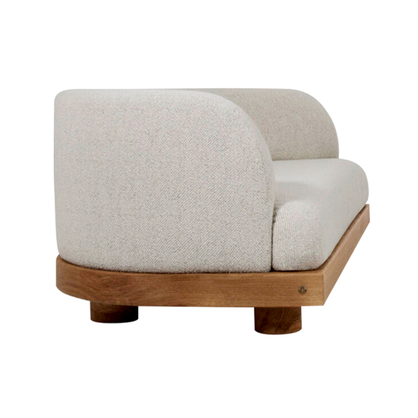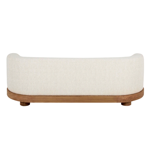 Crafted with soft white boucle fabric, this sofa offers a luxurious, warm texture. The boucle material feels comfortable against the skin while being highly durable for everyday use. A unique, circular cushion adds a playful yet functional accent, providing comfortable support for your back or head as you relax. Designed with a solid teak wood base, this sofa creates a striking contrast between the soft fabric texture and the natural strength of wood. The base is made from carefully processed wood to ensure maximum durability and stability. The warm natural wood tone not only enhances the aesthetic but also adds a natural element that harmonizes with various interior decor styles.