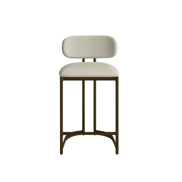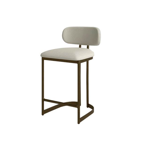 This stool frame is made of stainless steel, with a matte finish that exudes elegance and durability. Its slim, curved structure not only ensures stability but also enhances the aesthetic appeal. Additionally, the crossbar footrest provides balance support, ensuring a secure sitting experience. The seat and backrest soft light colored fabric, creating a striking contrast with the metal frame. The plush cushioning ensures maximum comfort. This bar stool promotes proper posture and offers ergonomic support, making it comfortable for both personal and commercial use.