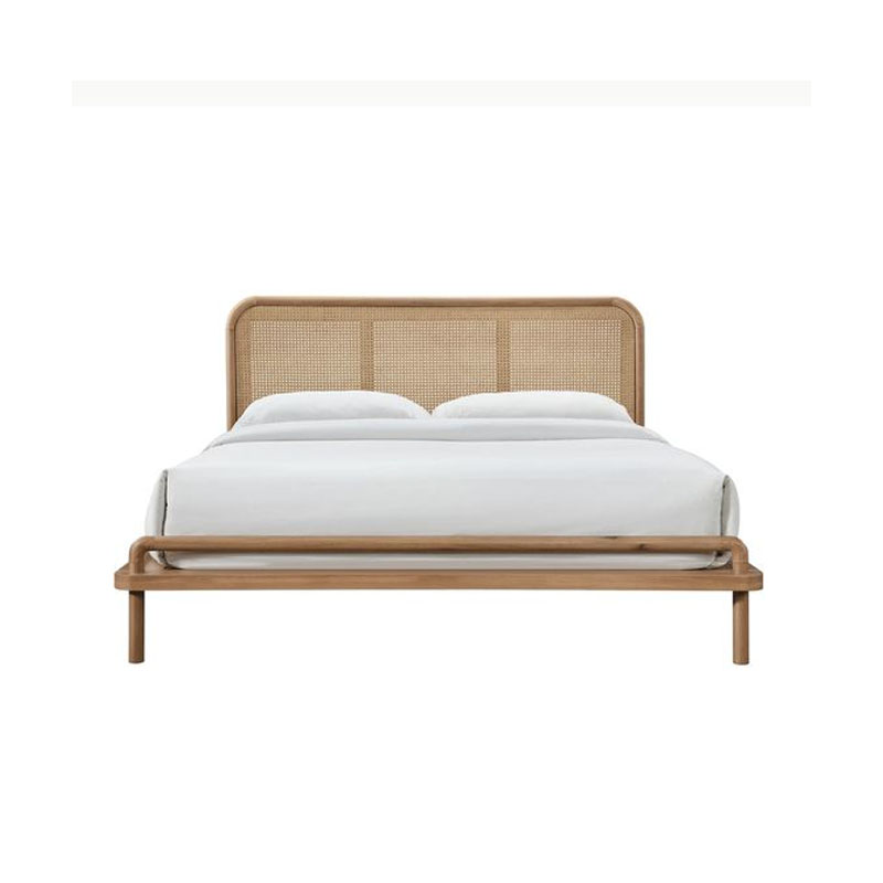 The Kaharsa Bedframe – a stunning centerpiece for any bedroom, meticulously crafted with the finest teak wood and natural rattan cane accents.