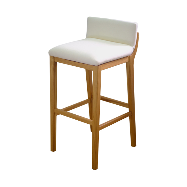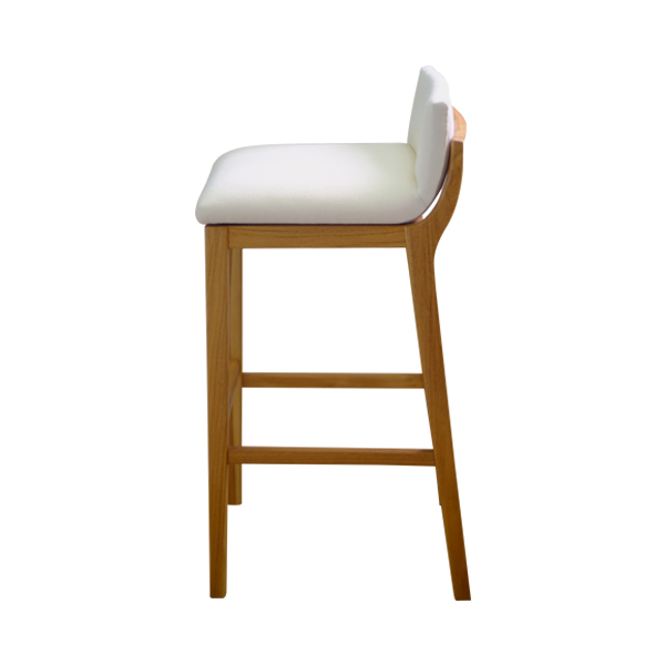 Modern Lusila Bar is a minimalist bar stool with an elegant modern design, perfect for enhancing home bars, cafe, or restaurants. This bar chair combines the natural beauty of solid teak wood with foam padding wrapped in polyester fabric.