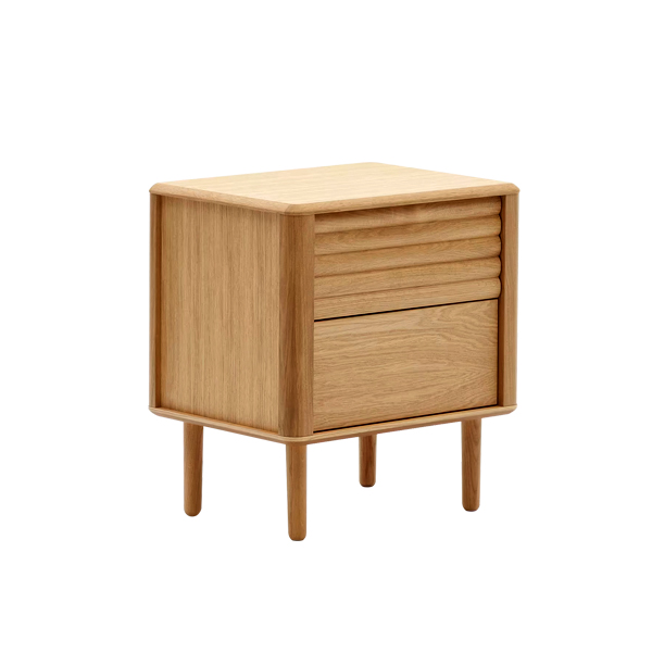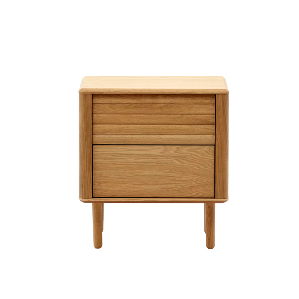 Crafted from solid teak wood for its strength and durability, this nightstand is built to last. The teak material provides lasting durability while exuding an elegant, natural charm. The natural finish on the teak wood results in a sleek, glossy appearance, highlighting the product’s high-quality craftsmanship. With its natural color, this nightstand seamlessly blends into any bedroom space, creating a warmer and cozier atmosphere. It features two spacious drawers, perfect for storing books, jewelry, or other small items, helping you keep your bedroom neat and organized. The slim yet sturdy legs add a light, modern touch, making it easy to pair with various interior styles.