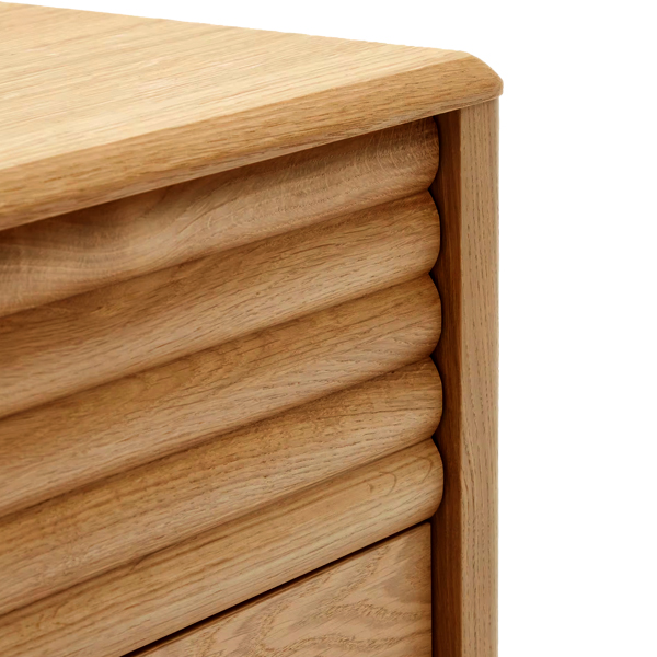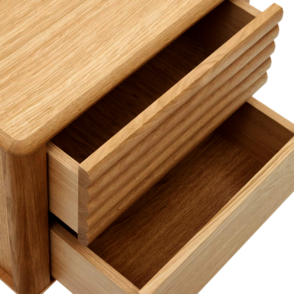 One of its standout features is the unique upper drawer design. The neatly arranged horizontal wave pattern adds an artistic touch, enhancing the nightstand’s visual appeal without sacrificing functionality. This wave design is not only visually attractive but also offers a smooth experience when opening and closing the drawer. The blend of aesthetic beauty and functionality creates a perfect harmony between style and comfort in your bedroom.