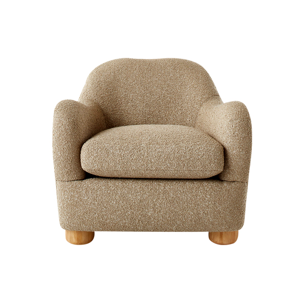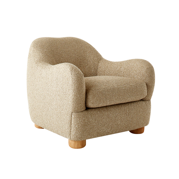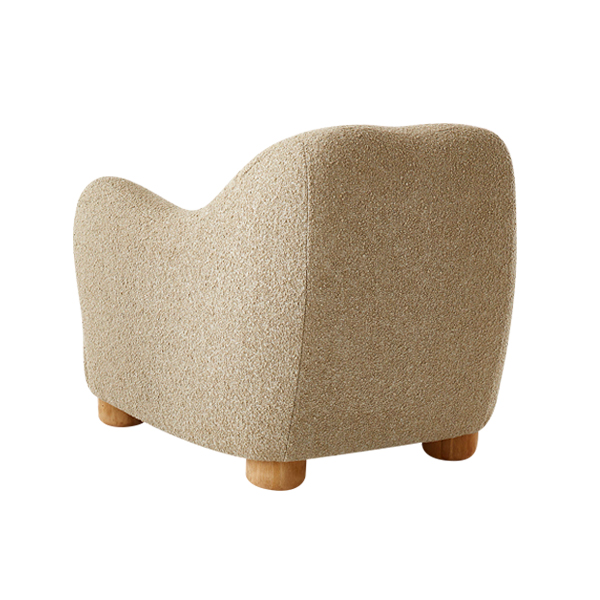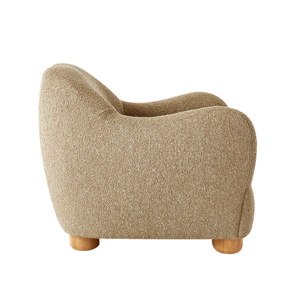 Featuring soft curves and a chic minimalist aesthetic, this chair boasts an exterior upholstered in creamy boucle fabric. This luxurious material not only enhances visual appeal but also delivers a soft and cozy texture, making it a perfect addition to your living room, bedroom, or private reading nook. Its ergonomic backrest provides optimal support for your spine, ensuring comfort for relaxation or extended reading sessions. This chair dimensions strike the perfect balance, offering generous seating space without compromising room layout practicality. Supported by four solid teak wood legs, the design ensures exceptional stability while adding a natural touch to its overall aesthetic. The warm, natural tone of the wood complements the chair’s modern elegance, creating harmony between contemporary and classic elements.