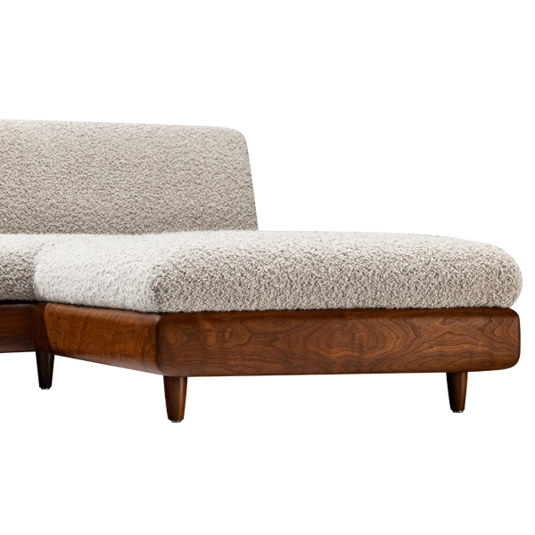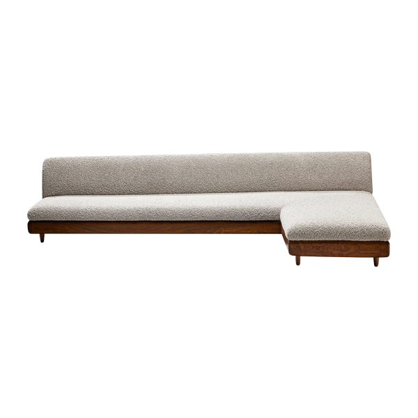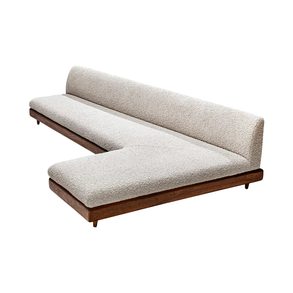 Ojala Boucle Sofa combines comfort and aesthetics in one elegant, contemporary design, this L-shaped and low-profile sofa creates a modern. Its wide, elongated seat is upholstered with soft, textured boucle fabric, delivering an artistic look perfect for relaxation.