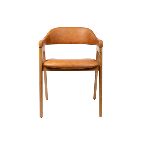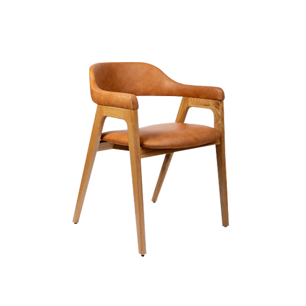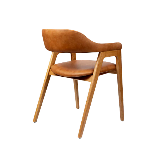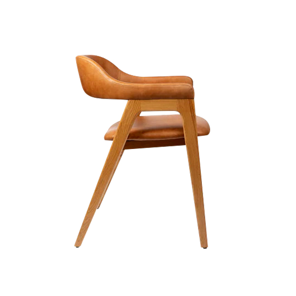 Its contemporary design features smooth, curved lines on the backrest and seat, adding a sophisticated touch. The teak wood frame exudes strength and durability, while the natural wood texture brings warmth to your dining area. The ergonomically curved backrest provides optimal support for your back, ensuring comfort even during long meals. The padded seat is upholstered in durable brown synthetic leather, resistant to stains and wear, making it both stylish and low maintenance.