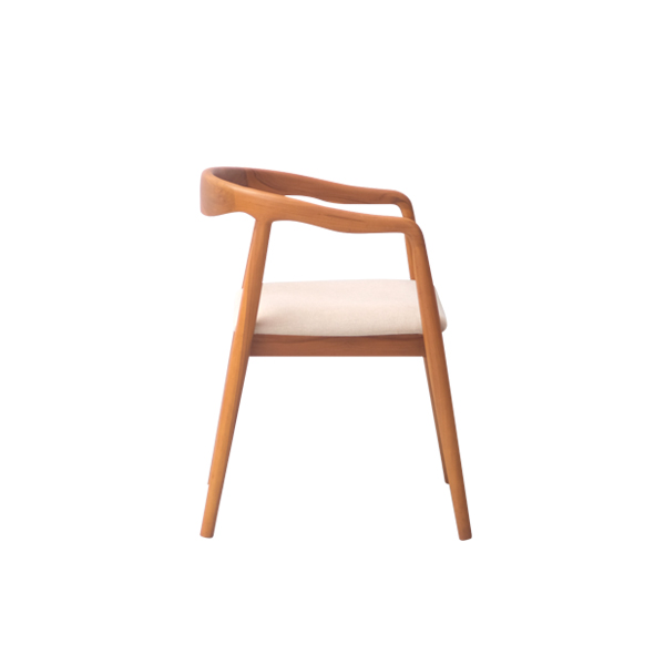Sally dining chair is a modern furniture piece that emphasizes a simple yet elegant design. Made from high-quality teak wood, this chair is specifically to complement contemporary dining spaces. Strength and durability of teak make it an ideal choice for long-term use, while natural finish adds a warm and cozy touch to your dining room. Minimalist design this chair reflects beauty in simplicity. With a sleek, yet elegant appearance, the chair is not only aesthetically pleasing but functional. The seat is padded with soft foam and upholstered with a smooth, textured fabric, providing extra comfort for prolonged seating. Soft fabric adds a touch of luxury, making the chair perfect for creating a welcoming atmosphere during family meals gatherings with guests.