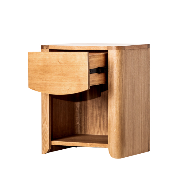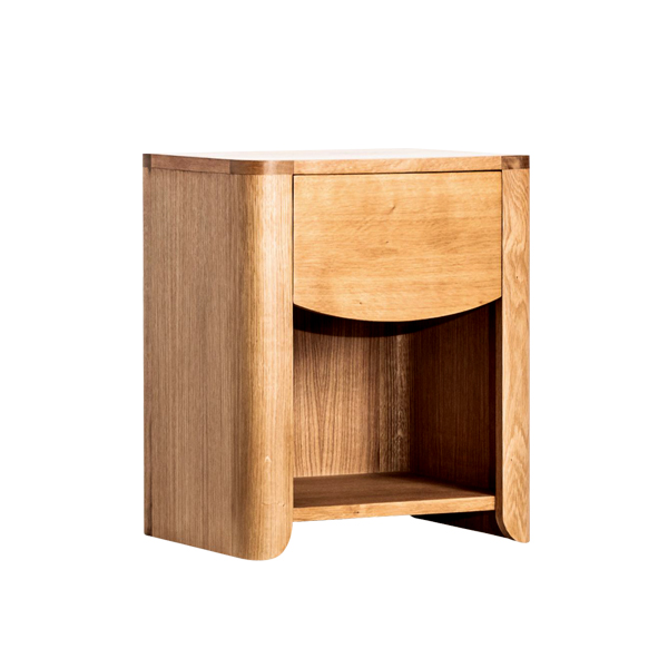 Virendra Bedside Cabinet embodies the beauty of minimalist design crafted with premium materials. Made from solid teak wood, this cabinet showcases natural textures that exude warmth and elegance. Its smoothly curved edges add a gentle touch to both modern and classic bedroom settings.