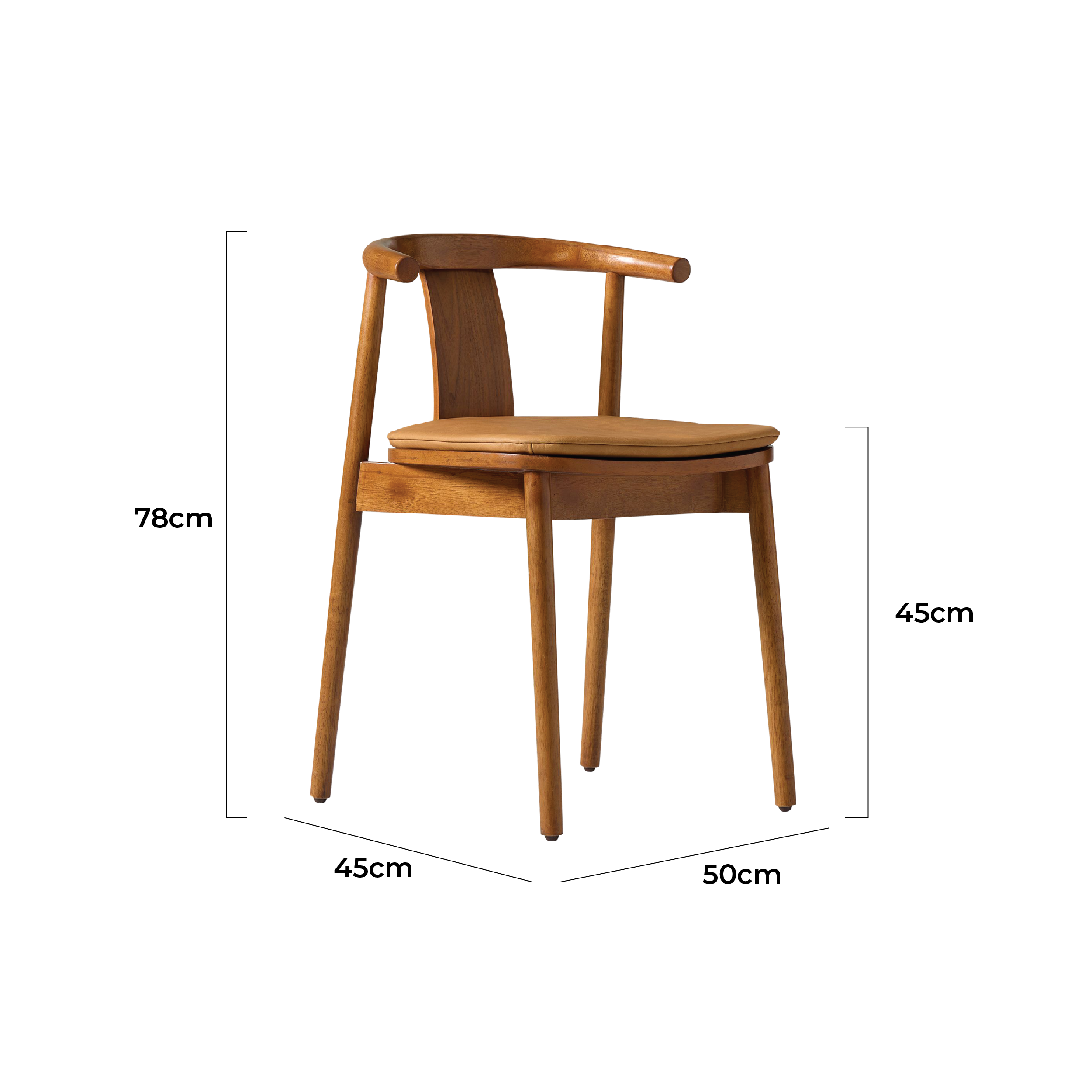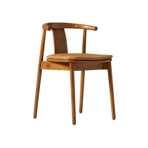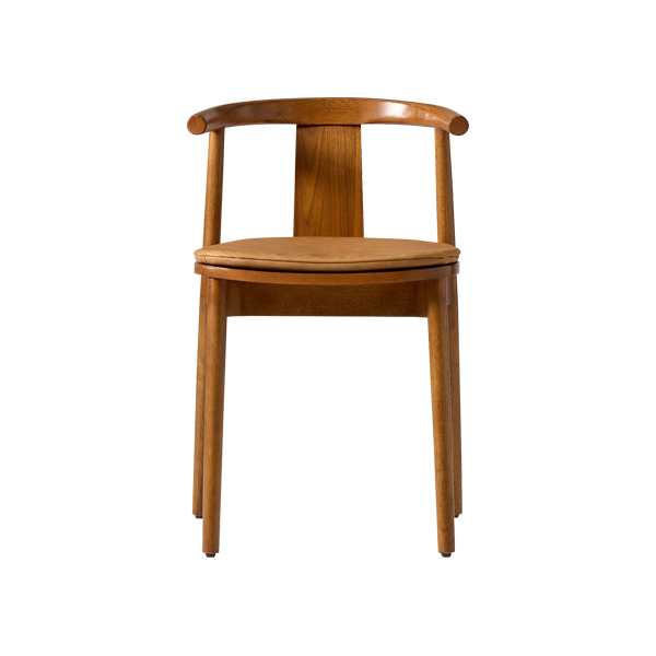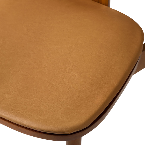 Crafted from solid teak wood with a natural treatment finish, it highlights the beauty of the wood’s natural grain, reflecting warmth and authenticity. Its slightly tilted design with a curved backrest provides optimal support for the body. Meanwhile, the additional wooden panel at the center adds both stability and a unique visual touch. The rounded seat features a removable foam cushion wrapped in Oskar synthetic leather. It offers a comfortable sitting experience and easy maintenance. Four slender tubular legs with sharp-edged details create a perfect balance between strength and aesthetics. At the bottom, small rubber protectors prevent scratches and keep your floor safe from friction.